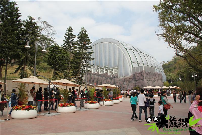 澳門大熊貓館位於路環石排灣郊野公園內,建築占地約3000平方米,整個建築利用現有的地形結合建築的特性進行設計,依山而建,呈扇形的分佈。