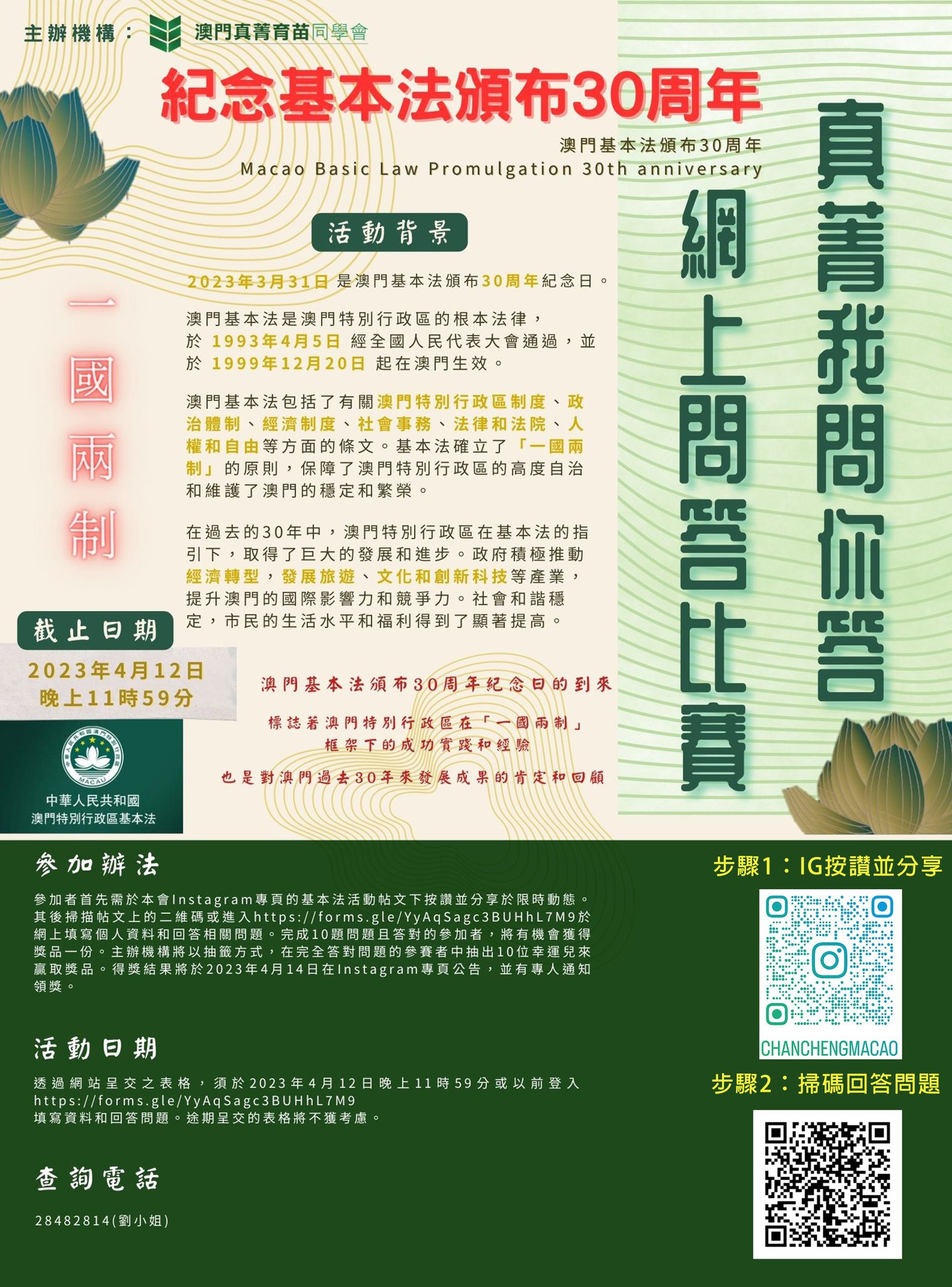 參加活動的Instagram帳號需為本人真實帳號。參加者必須為本澳居民,以個人名義參加,毎人最多只可參加一次,即最多只可遞交一份問卷。參加多於一次之參加者,將以最先呈交之資料作有效計算,其後所呈交之表格作廢。 主謝單位保留修改比賽規則的權利。