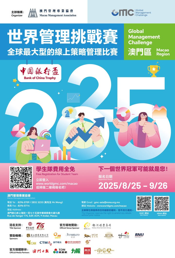 2025年度「世界管理挑戰賽」澳門區賽事即將展開,賽程如下: